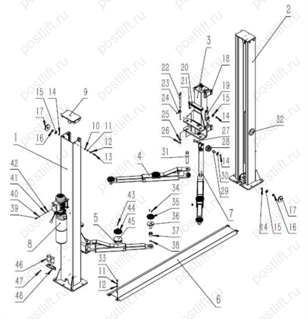 Подробная информация о конструкции на Подъемник 2-х стоечный ПГН2-4.0 (А) 380В, представленная в деталировке, поможет быстро и правильно подобрать запчасти для ремонта или переборки Вашего оборудования своими руками. Если у Вас всё равно останутся вопросы, то наши квалифицированные специалисты готовы помочь Вам с подбором запчастей.