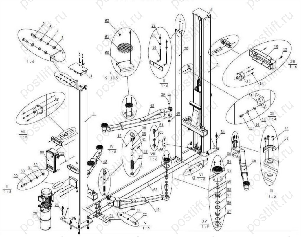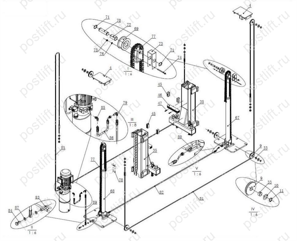 Подробная информация о конструкции на Подъемник 2-х стоечный ПГН2-4.0 (МЕ), представленная в деталировке, поможет быстро и правильно подобрать запчасти для ремонта или переборки Вашего оборудования своими руками. Если у Вас всё равно останутся вопросы, то наши квалифицированные специалисты готовы помочь Вам с подбором запчастей.