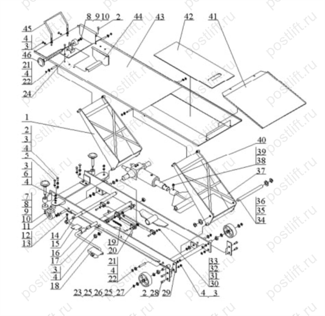 Подробная информация о конструкции на Подъемник гидравлический ножничный для мототехники TST045M, представленная в деталировке, поможет быстро и правильно подобрать запчасти для ремонта или переборки Вашего оборудования своими руками. Если у Вас всё равно останутся вопросы, то наши квалифицированные специалисты готовы помочь Вам с подбором запчастей.